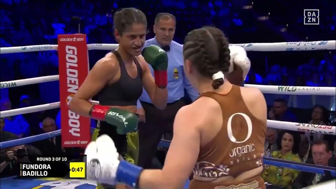 Фундора успешно сохранила статус абсолютной чемпионки мира, покинув ринг со всеми четырьмя своими чемпионскими поясами (WBC, IBF, WBA и WBO). 23-летняя спортсменка по прозвищу «Сладкий Яд», улучшив свой послужной список до 16 побед (8 нокаутом) без поражений, оказалась явно сильнее Бадильо. Для Мэрилин Бадильо (19-1-1, 3 нокаута) это был первый бой такого уровня, и она не смогла выдержать натиска чемпионки.
