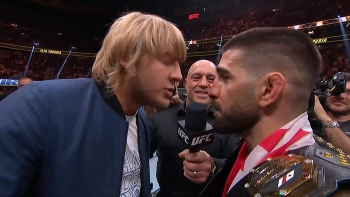 Совсем недавно, на турнире UFC 317 в рамках International Fight Week, Илия Топурия встретился с Чарльзом Оливейрой в главном событии за вакантный титул в легком весе. Продолжая свое восхождение как одна из главных звезд спорта, Топурия одержал жесткую победу нокаутом в первом раунде. Эта победа сделала его десятым бойцом в истории UFC, завоевавшим титулы в двух весовых категориях. Сразу после этой важной победы «Эль Матадор» провел импровизированную дуэль взглядов со своим потенциальным первым соперником по защите титула – Пэдди Пимблеттом, который вышел в октагон.