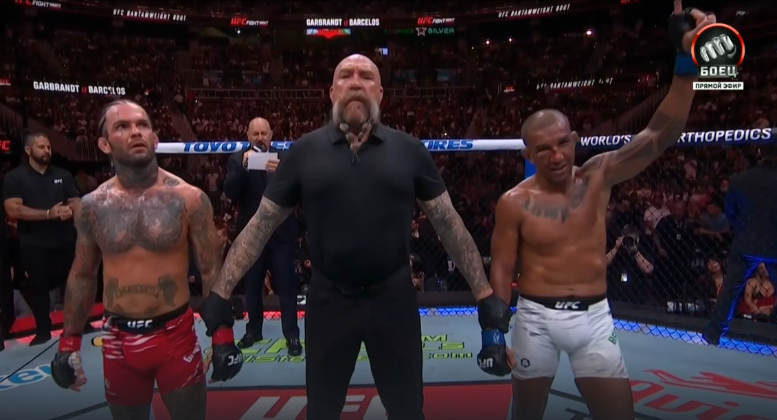 Поединок Коди Гарбрандта и Раони Барселоса рассчитан на три раунда и не является титульным боем. Имейте в виду, что точное время выхода бойцов в октагон может варьироваться в зависимости от продолжительности предыдущих боев на карде.